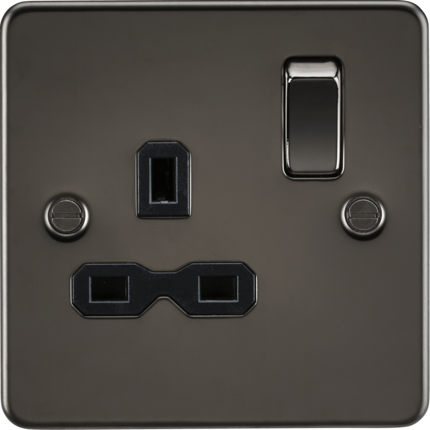 Knightsbridge Flat Plate FPR7000GM 13A 1G DP Switched Socket - Gunmetal