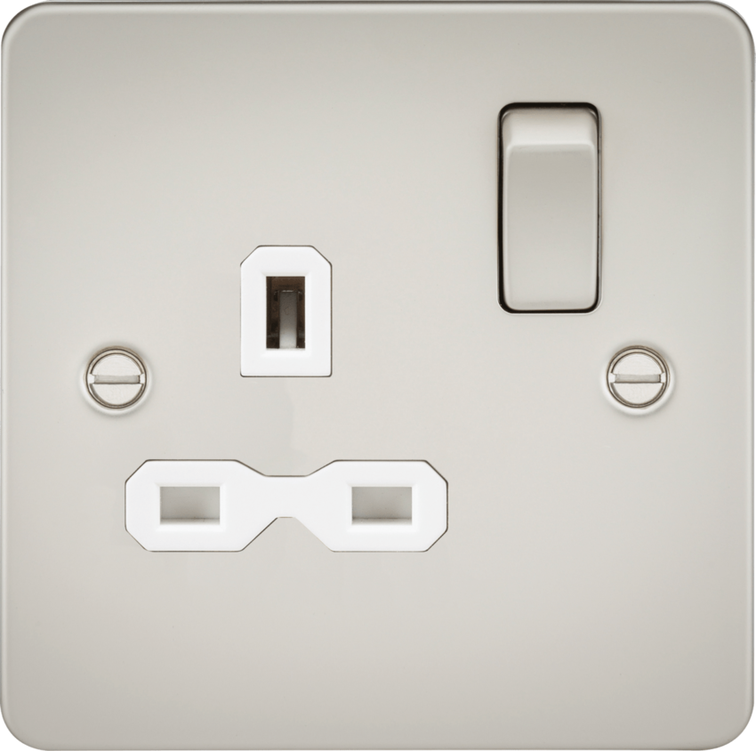 Knightsbridge Flat Plate FPR7000PLW 13A 1G DP Switched Socket Pearl -White Insert