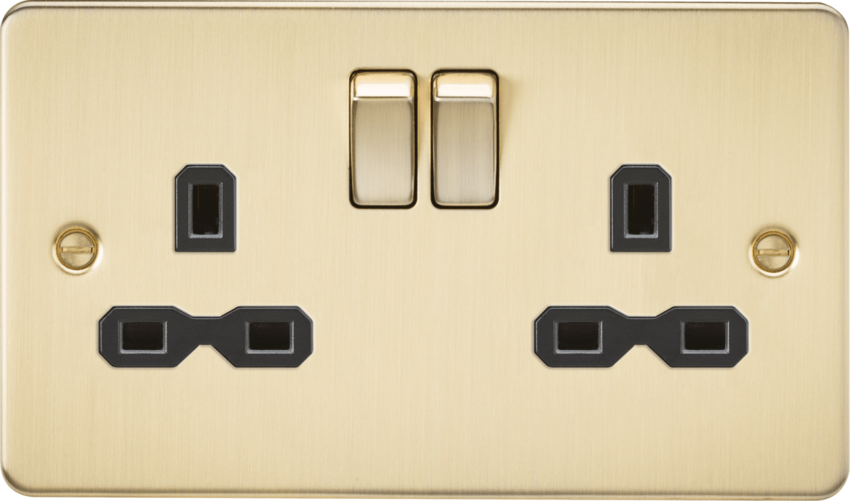 Knightsbridge Flat Plate FPR9000BB 13A 2G DP Switched Socket BB -Black Insert