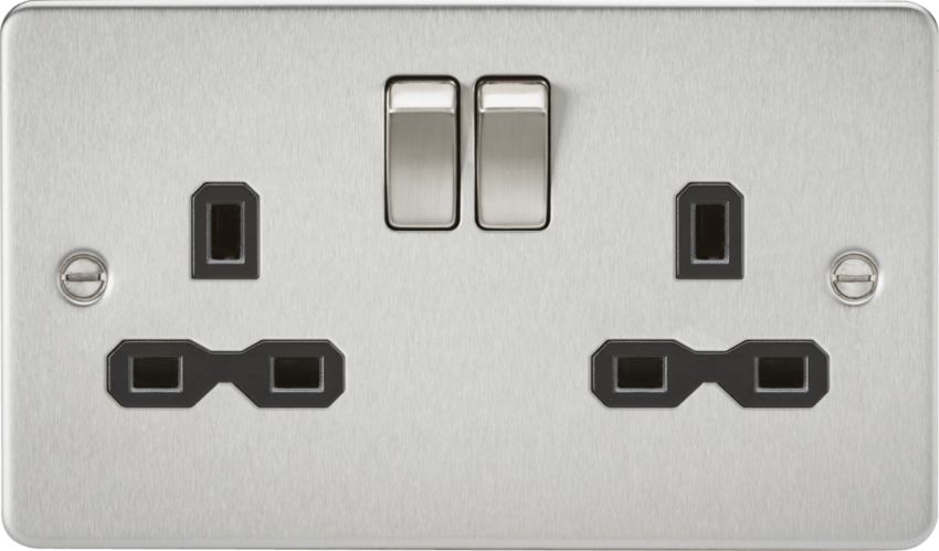 Knightsbridge Flat Plate FPR9000BC 13A 2G DP Switched Socket BC -Black Insert