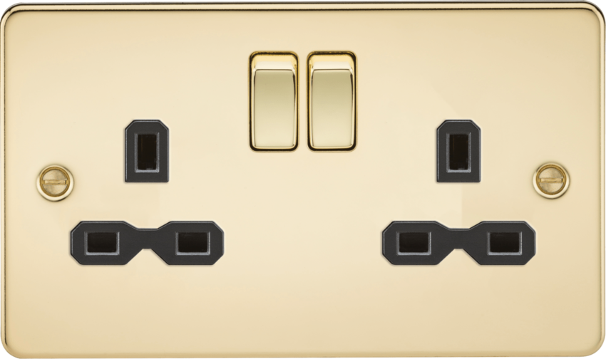 Knightsbridge Flat Plate FPR9000PB 13A 2G DP Switched Socket PB - Black Insert