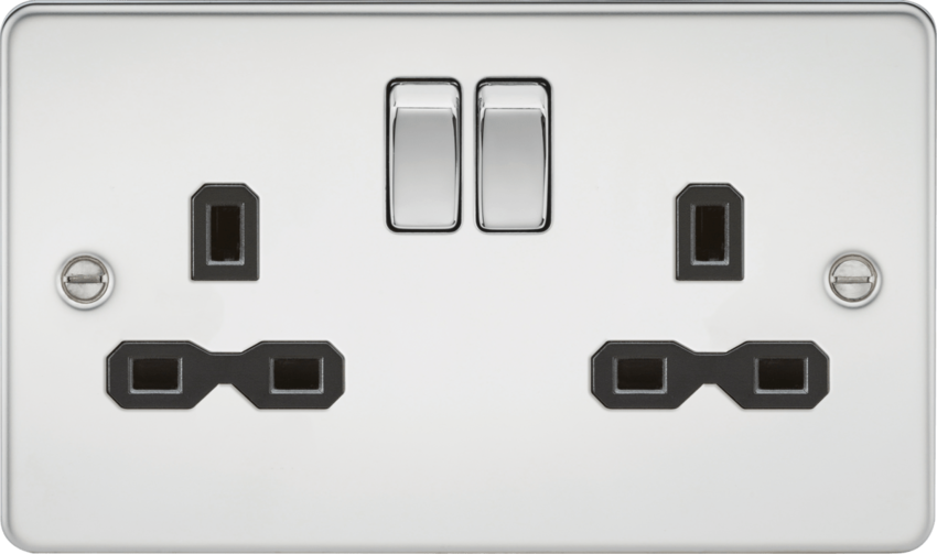 Knightsbridge Flat Plate FPR9000PC 13A 2G DP Switched Socket PC -Black Insert