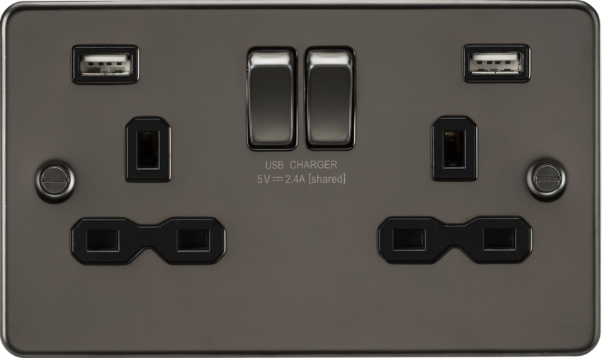 Knightsbridge Flat Plate FPR9224GM 13A 2G Switched Socket with Dual USB Charger (A+A) - Gunmetal