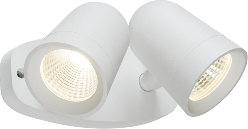 Knightsbridge's LED Twin Spot Flood Light suitable for outdoor use, with two adjustable heads.