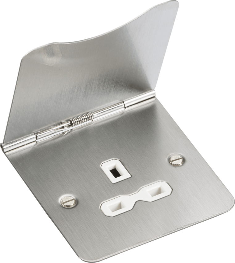 Knightsbridge's flate plate floor socket range, spring loaded cover ideal for a multitude of interior design finishes.