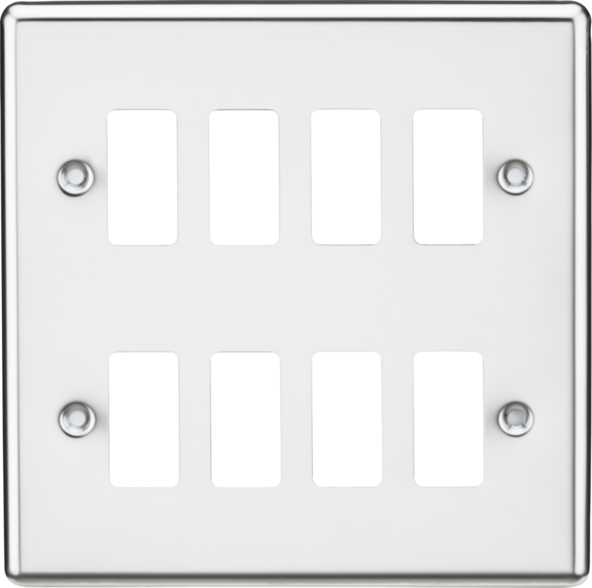 8 Gang Grid Faceplate, for use in conjunction with 2 x GDF002F (sold separately).