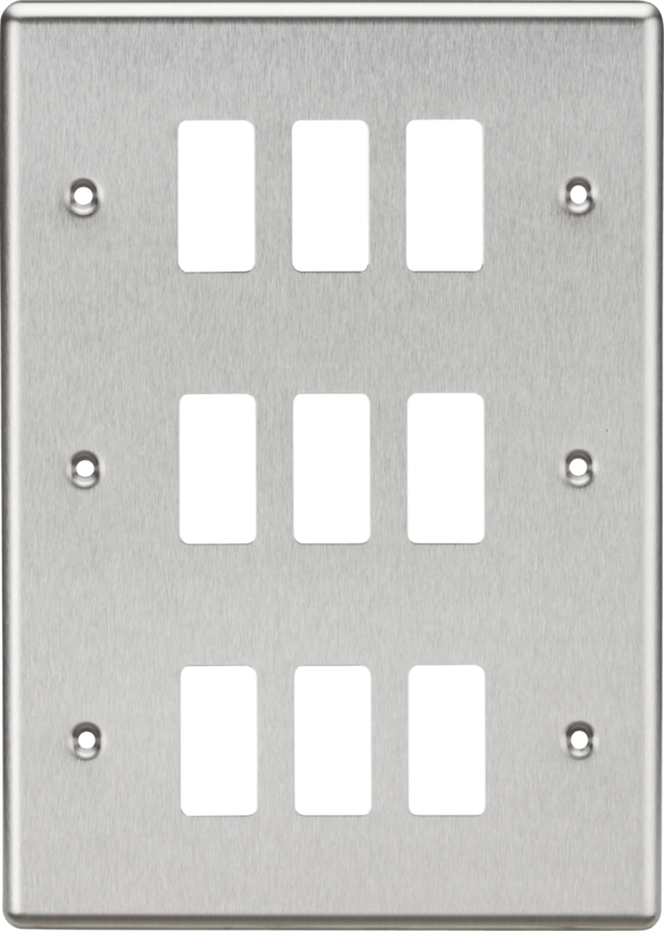 9 Gang Grid Faceplate, for use in conjunction with 3 x GDF002F (sold separately).