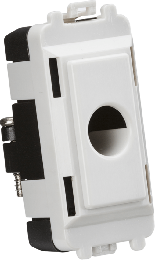 Knightsbridge Grid System. Flex Outlet Module, up to 10mm. General Information Plate Dimensions: 24.8mm (W) x 56.3mm (H) Projection: 4mm Recessed Depth: 22.6mm Min Mounting Box Depth: 35mm P ... Read More