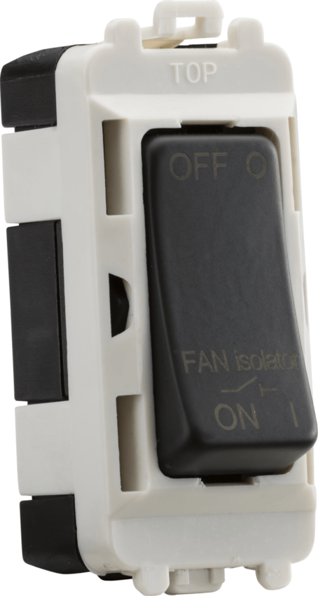 Knightsbridge Grid System. 10A Fan Isolator Module. General Information Plate Dimensions: 25mm (W) x 56.3mm (H) Projection: 7mm Recessed Depth: 12mm Min Mounting Box Depth: 25mm Finish: Anth ... Read More