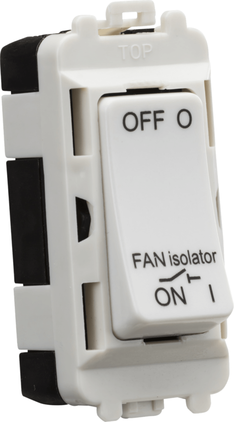 Knightsbridge Grid System. 10A Fan Isolator Module. General Information Plate Dimensions: 25mm (W) x 56.3mm (H) Projection: 7mm Recessed Depth: 12mm Min Mounting Box Depth: 25mm Finish: Whit ... Read More