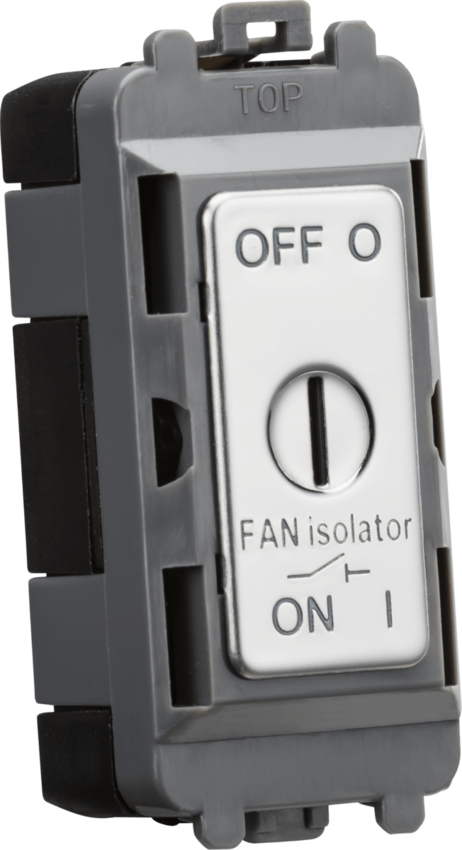 Knightsbridge Grid System. 10A Fan Isolator Key Switch Module. General Information Plate Dimensions: 25mm (W) x 56.3mm (H) Projection: 2.5mm Recessed Depth: 17.5mm Min Mounting Box Depth: 25 ... Read More