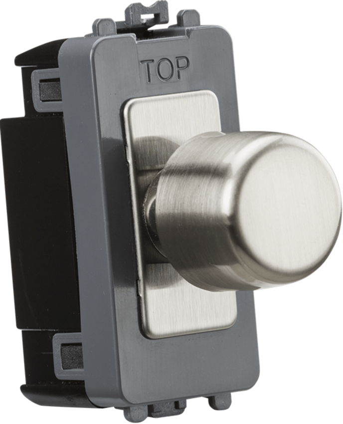 Knightsbridge Grid System. 1G 2 Way Trailing Edge Dimmer Module. General Information Plate Dimensions: 25mm (W) x 56.3mm (H) Projection: 23mm Recessed Depth: 22mm Min Mounting Box Depth: 35m ... Read More