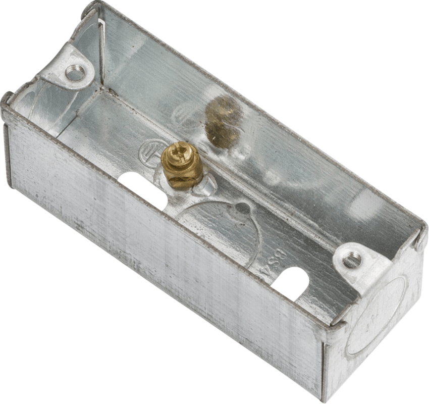 Knightsbridge's 1G Architrave Galvanised Steel Box. Construction 1mm thickness (+/- 1%). General Information Plate Dimensions: 27mm (W) x 73mm (H) Recessed Depth: 27mm With Earth Terminal Ma ... Read More