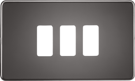 4 Gang Grid Faceplate. Designed and finished to coordinate with the Screwless Switches and Sockets range.