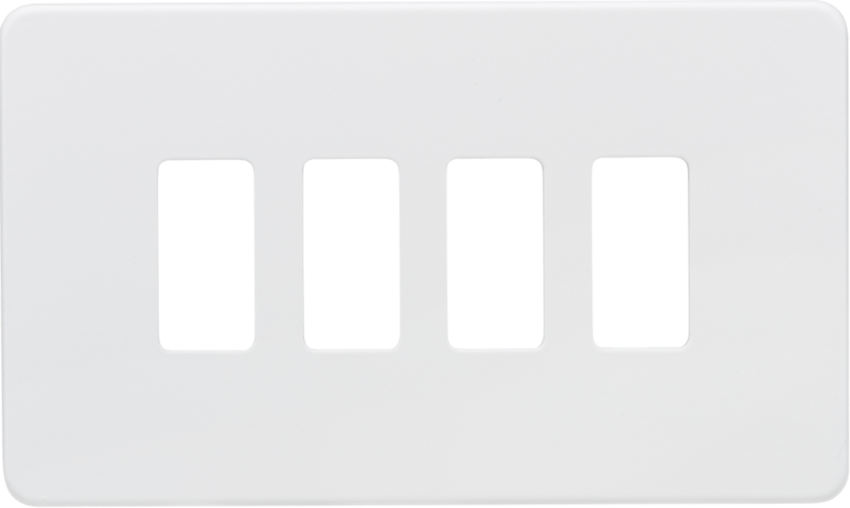 4 Gang Grid Faceplate. Designed and finished to coordinate with the Screwless Switches and Sockets range.