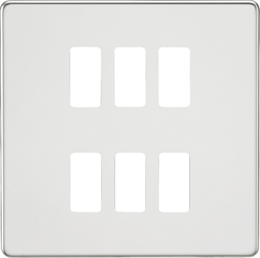 6 Gang Grid Faceplate. Designed and finished to coordinate with the Screwless Switches and Sockets range.
