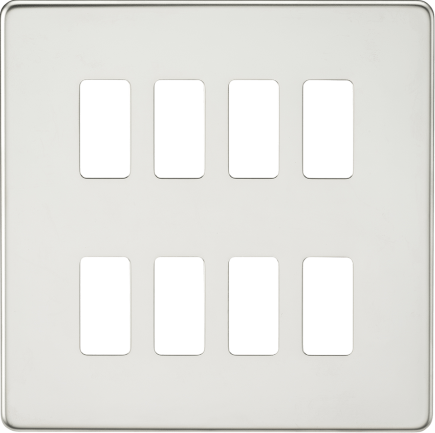 8 Gang Grid Faceplate. Designed and finished to coordinate with the Screwless Switches and Sockets range.