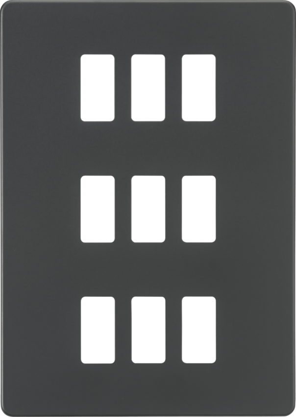 9 Gang Grid Faceplate. Designed and finished to coordinate with the Screwless Switches and Sockets range.