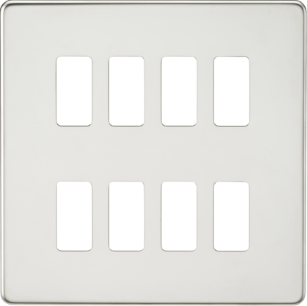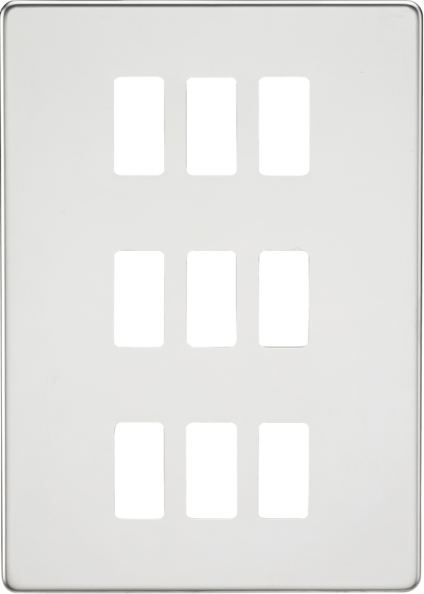 9 Gang Grid Faceplate. Designed and finished to coordinate with the Screwless Switches and Sockets range.