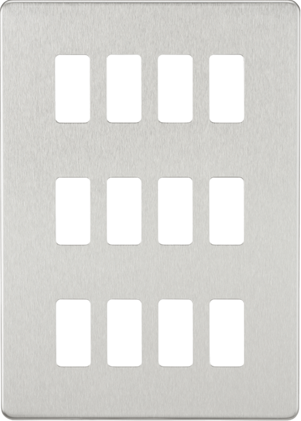 12 Gang Grid Faceplate. Designed and finished to coordinate with the Screwless Switches and Sockets range.