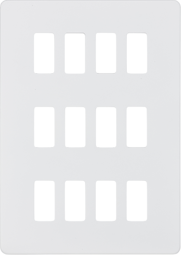 12 Gang Grid Faceplate. Designed and finished to coordinate with the Screwless Switches and Sockets range.