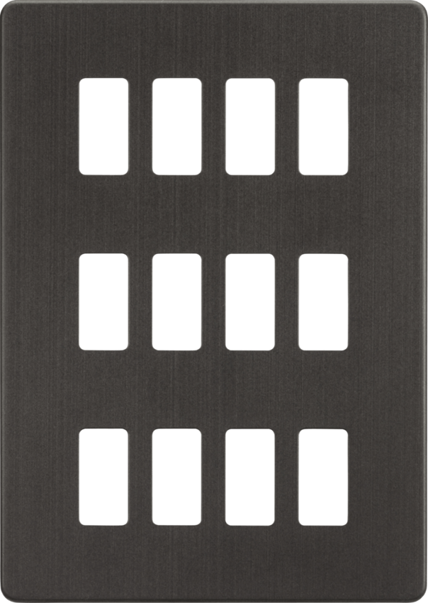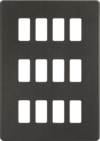 12 Gang Grid Faceplate. Designed and finished to coordinate with the Screwless Switches and Sockets range.