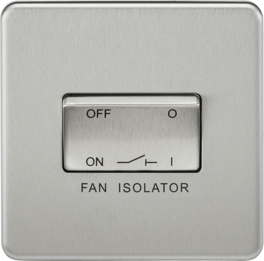 Knightsbridge's flawless, screwless range, a low profile design made from a premium grade steel. 10AX 3 Pole Fan Isolator Switch. General Information Plate Dimensions: 87.5mm (W) x 87.5mm (H ... Read More