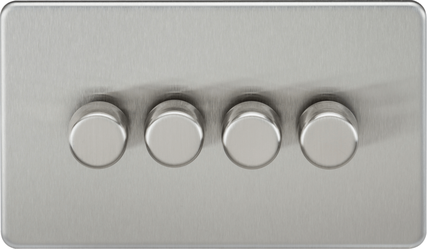 Knightsbridge's flawless, screwless range, a low profile design made from a premium grade steel. 4 Gang 2 Way Trailing Edge Dimmer, 10-200W Incandescent, 5-150W LED. General Information Plat ... Read More