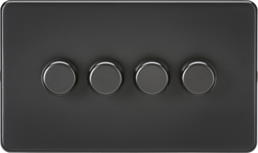 4 Gang 2 Way Trailing Edge Dimmer, 10-200W Incandescent, 5-150W LED.