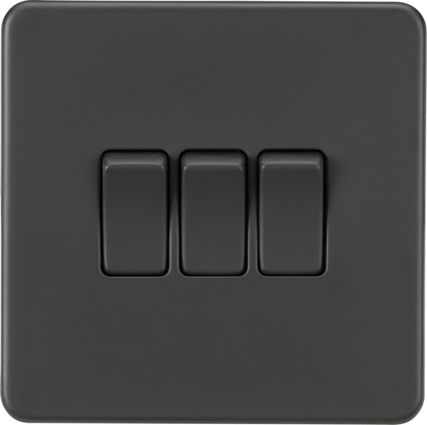 Knightsbridge's flawless, screwless range, a low profile design made from a premium grade steel. 10AX 3 Gang 2 Way Switch. General Information Plate Dimensions: 87.5mm (W) x 87.5mm (H) Proje ... Read More