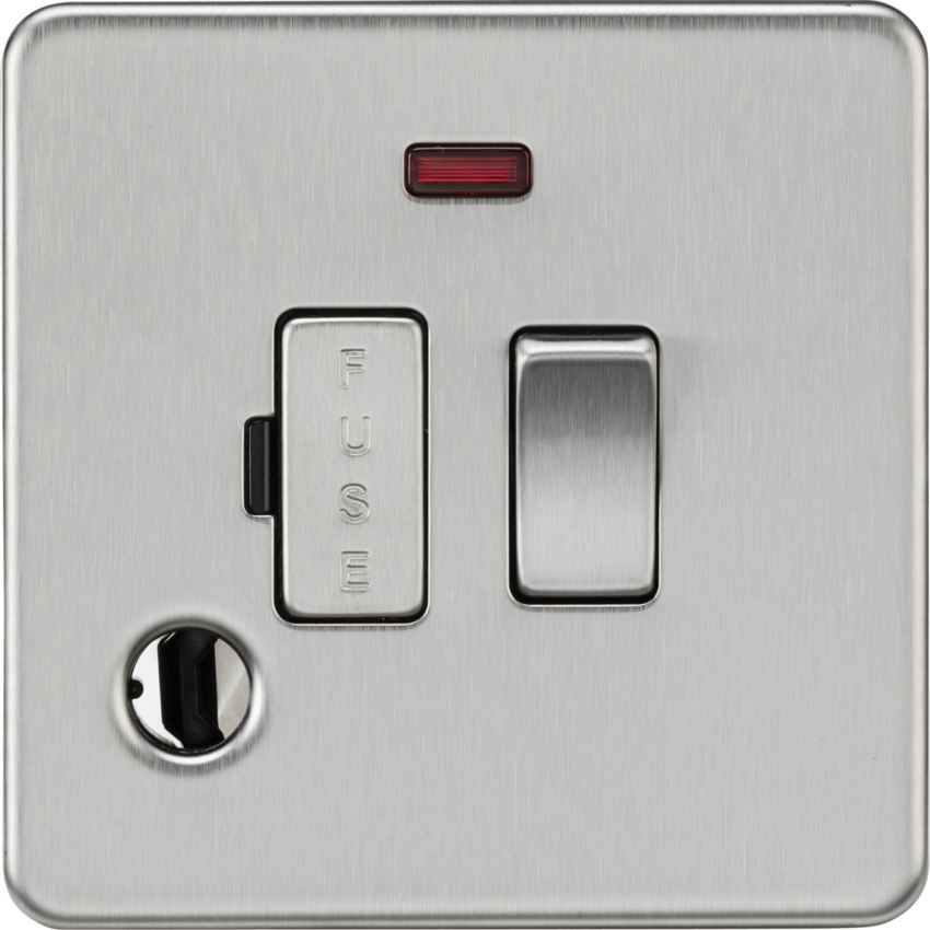 Knightsbridge Screwless SF6300FBC 13A Switched Fused Spur Unit with Neon & Flex Outlet - Brushed Chrome