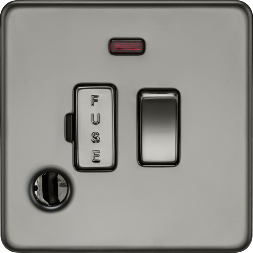 Knightsbridge Screwless SF6300FBN 13A Switched Fused Spur Unit with Neon & Flex Outlet - Black Nickel