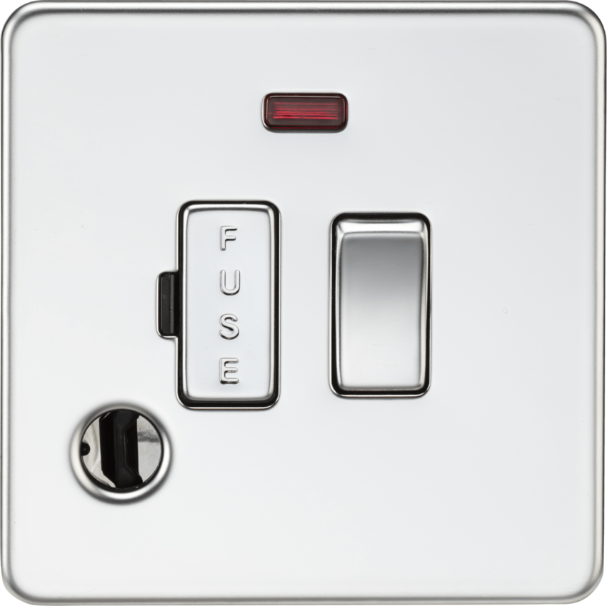 Knightsbridge Screwless SF6300FPC 13A Switched Fused Spur Unit with Neon & Flex Outlet - Polished Chrome