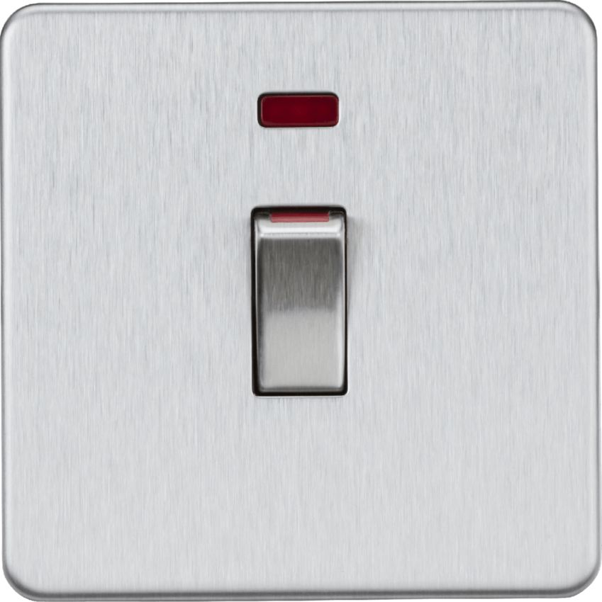 Knightsbridge Screwless SF81MNBC 45A 1G DP Switch with Neon - Brushed Chrome