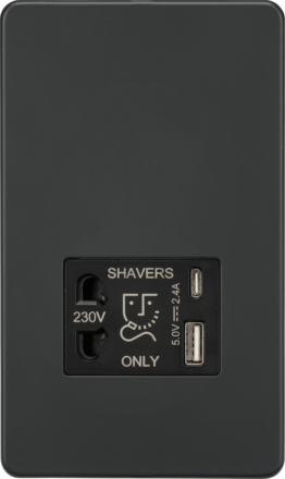 Knightsbridge Screwless SF8900AT Dual Voltage Shaver Socket (115V/230V) - Anthracite