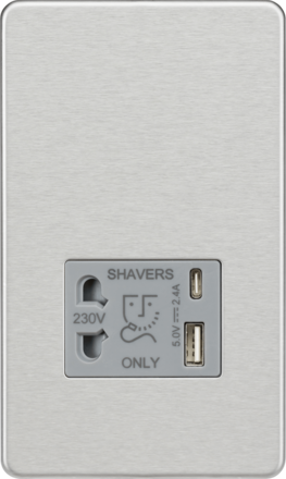 Knightsbridge Screwless SF8900BCG Dual Voltage Shaver Socket (115V/230V) - Brushed Chrome - Grey Insert