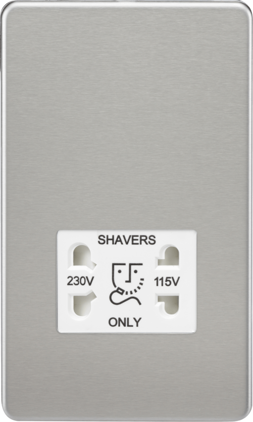 Knightsbridge Screwless SF8900BCW Dual Voltage Shaver Socket (115V/230V) - Brushed Chrome - White Insert