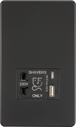 Knightsbridge Screwless SF8900MB Dual Voltage Shaver Socket (115V/230V) - Matt Black