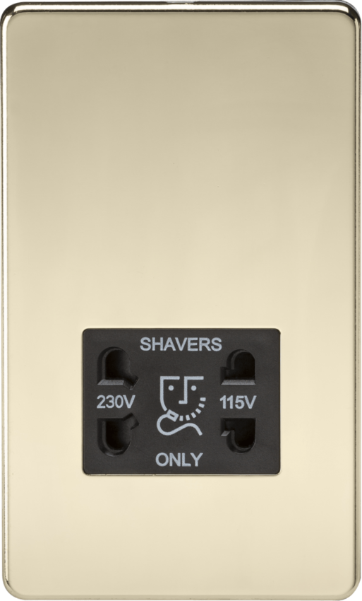 Knightsbridge Screwless SF8900PB Dual Voltage Shaver Socket (115V/230V) - Polished Brass - Black Insert