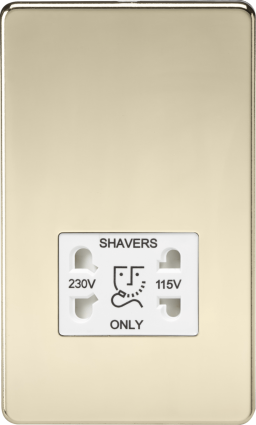 Knightsbridge Screwless SF8900PBW Dual Voltage Shaver Socket (115V/230V) - Polished Brass - White Insert
