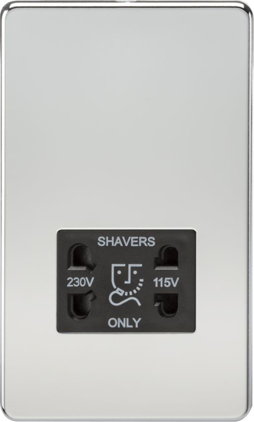 Knightsbridge Screwless SF8900PC Dual Voltage Shaver Socket (115V/230V) - Polished Chrome - Black Insert