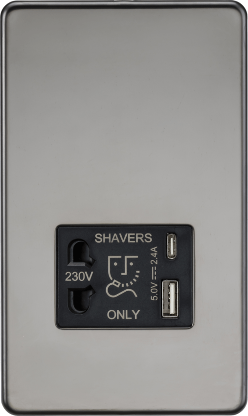 Knightsbridge Screwless SF8909BN Dual USB Single Voltage Shaver Socket (USB A+ C) - Black Nickel