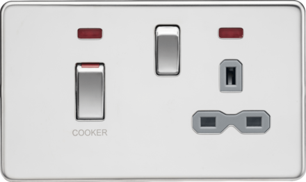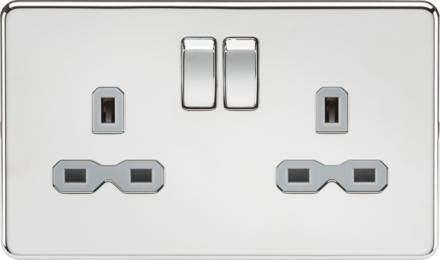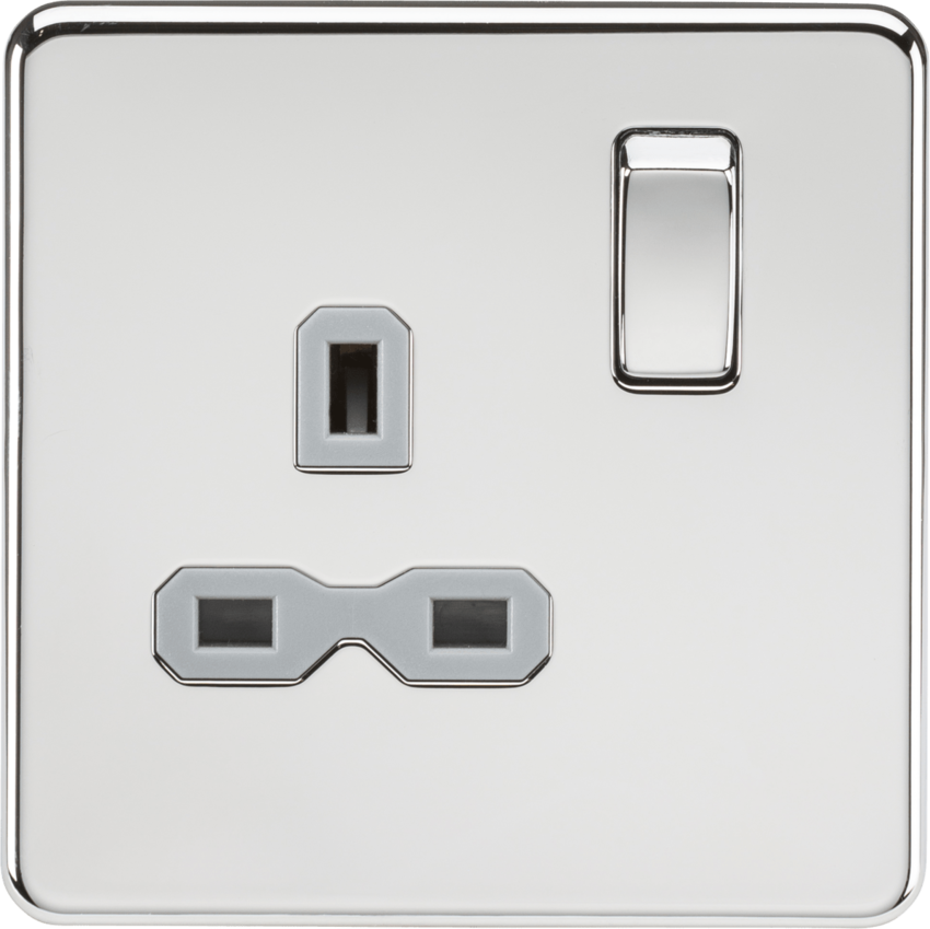 Knightsbridge Screwless SFR7000PCG 13A 1G DP Switched Socket - Polished Chrome - Grey Insert