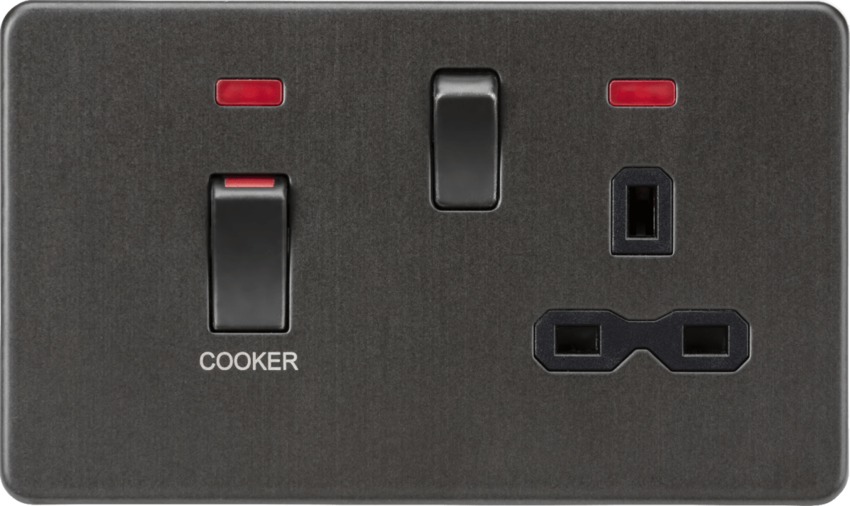 Knightsbridge Screwless SFR83MNSB 45A DP Switch & 13A Switched Socket with Neon - Smoked Bronze