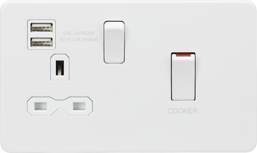 Knightsbridge Screwless SFR83UMMW 45A DP Switch & 13A Switched Socket with Dual USB Charger - Matt White