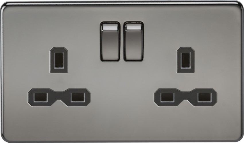 Knightsbridge Screwless SFR9000BN 13A 2G DP Switched Socket - Black Nickel