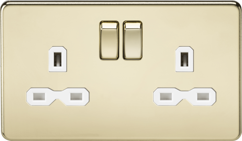 Knightsbridge Screwless SFR9000PBW 13A 2G DP Switched Socket - Polished Brass - White Insert