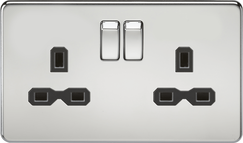 Knightsbridge Screwless SFR9000PC 13A 2G DP Switched Socket - Polished Chrome - Black Insert