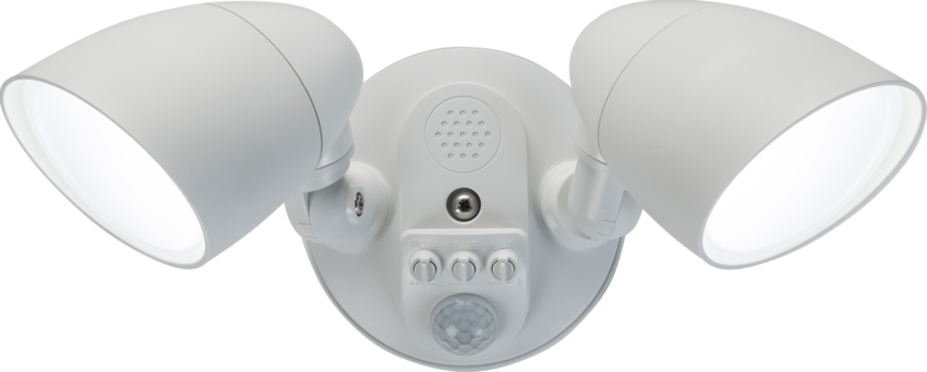 Knightsbridge's Twin Head Security Flood Light with built in PIR combined with lux sensor for accurate presence detection and manual override option.