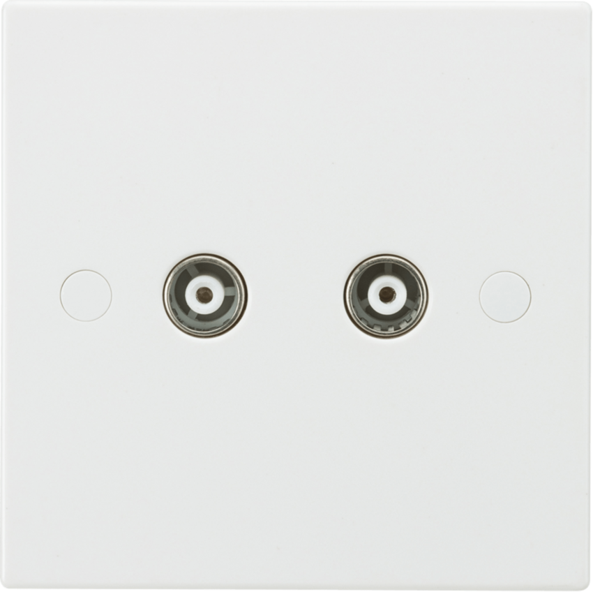 Knightsbridge's Square Edge slimline profile with screw cap covers to create a clean finish. Hard wearing, durable, scratch resistant thermoset material. Twin Coax TV Outlet (Non-Isolated). ... Read More